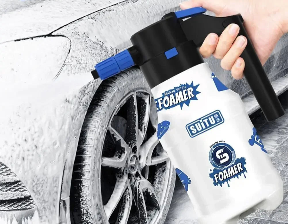 Pulverizador eléctrico de alta calidad. Dispone de cargador propio tipo c que carga en 20 minutos y tiene una duración de 45 minutos a máxima potencia. Dispone de una presión de 8 bares, lo cual permite impregnar toda la superficie con facilidad. Dispone tambien de dos punteras, una con disparo abierto de hasta 75º grados y la otra mas cerrado para asi poder utilizarlo como una simple manguera. El diseño es blanco en el cual se incluyen pegatinas para la decoración personal de cada usuario. Dispone de un botón de bloqueo para asi poder guardarlo sin miedo a que se active y se gaste el producto del interior.